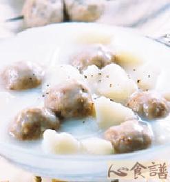 材料 鲜淮山250克,猪肉250克,姜2片,葱末适量,盐适量,生粉适量,料酒适量,生抽适量,生油适量...