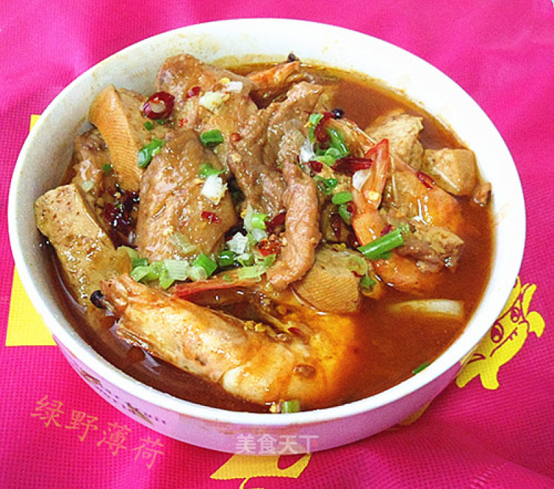 简介 色泽红亮,肉质鲜嫩,口味浓厚。 材料 主料:净大虾肉400克,鸡胸肉250克。 配料:珍珠叶50克。 调料:...