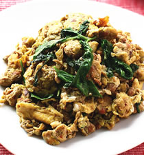 简介 此菜清淡鲜香,含有蛋白质、脂肪、钙、磷、铁和维生素等多种营养成分,适于孕妇食用。 材料 主料:熟猪...