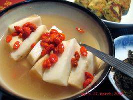 材料 鸡腿2只,小黄瓜1条,红萝卜1/2个,鸡蛋2个,梨1个,香菇8朵,沙拉笋2个,姜片2片,葱段少许,麻油适量,黄芥末3大匙,糖2大匙,醋2大匙,酱油1大...