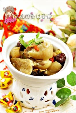 材料 猪脚1只,葱5根,辣椒2根,姜片5片,八角3颗,冰糖3大匙,绍兴酒100㏄,酱油300㏄,水2000㏄...