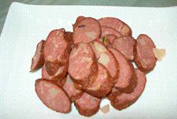 材料 熟香肠2节,青蒜1支,辣椒2支,酒1大匙,酱油1/2大匙,清水2大匙...
