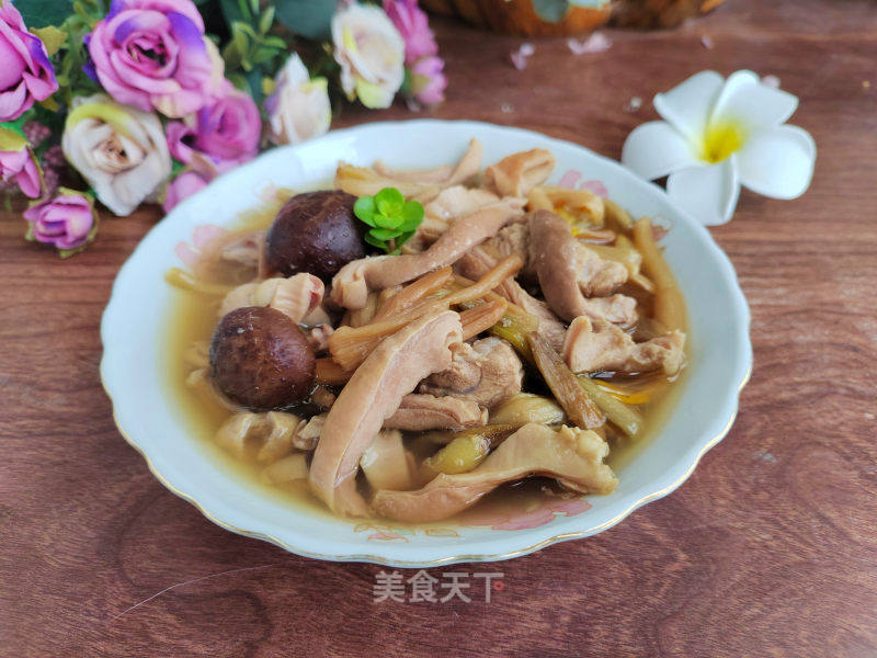 材料 鸡爪600公克,竹笋600公克,冬菇5朵,陈皮2钱,腌制凤梨150公克,热开水8杯,盐少许,鸡粉少许...