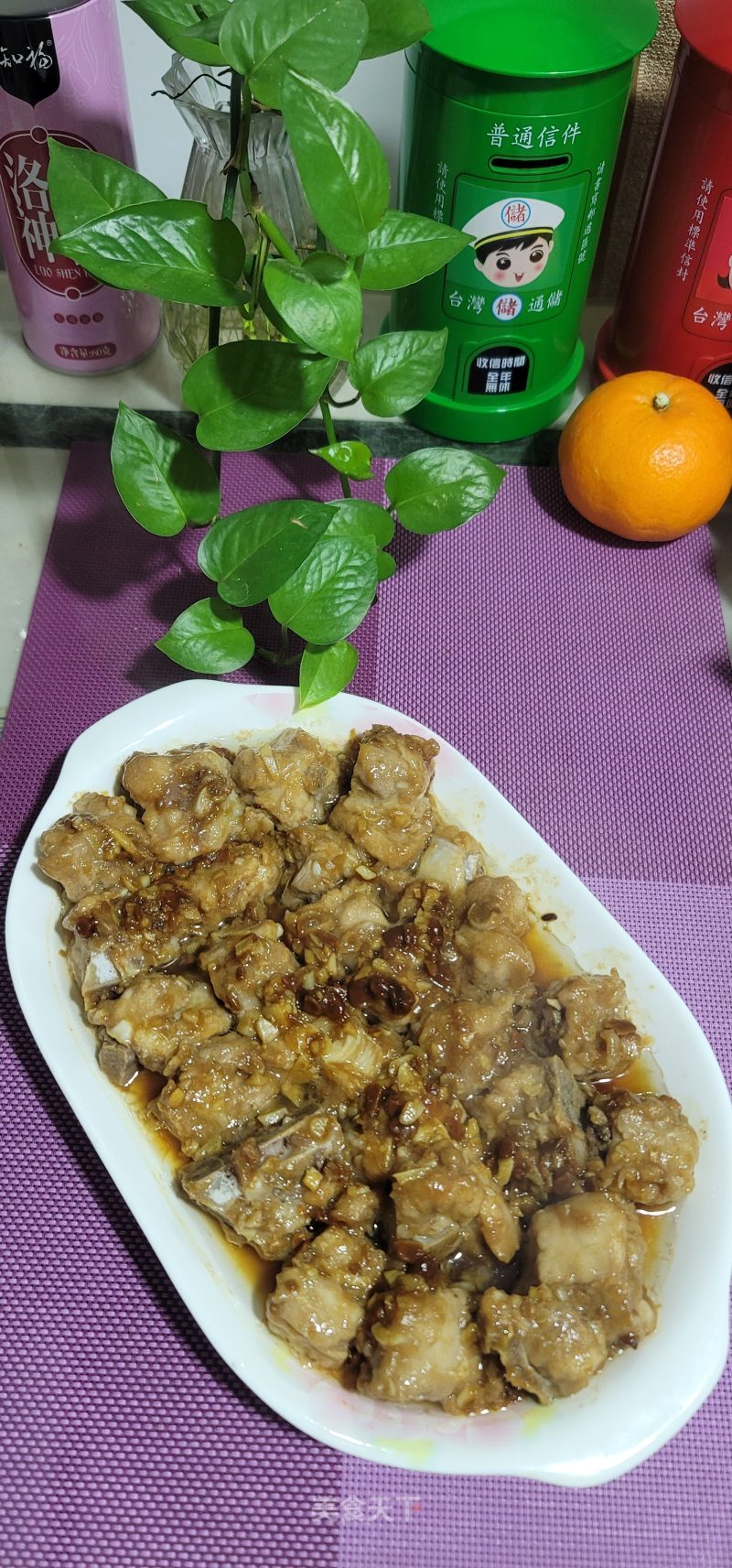 材料 猪肋排600公克,蒜头1球,葱2支,洋葱1/2个,辣椒1根,市售卤包1个,蚝油2大匙,酒2大匙,蕃茄酱2大匙,冰糖1大匙,高汤4杯...