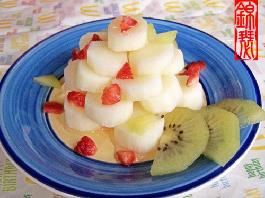 材料 虾仁10条,凤梨1片,水梨1/4个,美乃滋100公克,起司粉1大匙,馄饨皮10张,低筋面粉20公克,水10㏄...