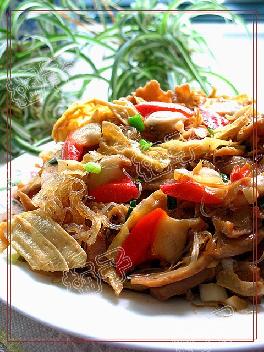 材料 熟乌龙面200公克,油豆皮3张,香菇3朵,葱1支,白萝卜30公克,红萝卜20公克,水1杯,酱油3大匙,味淋2大匙,糖1/2大匙,酒2大匙,乌龙面酱汁30㏄...