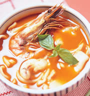材料 A.洋葱丁120公克,芹菜丁30公克,奶油30公克,生玉米粒750公克,鲜鸡高汤2000㏄,B.西洋芹粉少许,红椒粉少许,火腿丁适量,液态鲜奶油适量,盐1小...
