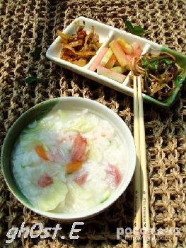 材料 米4杯,清高汤4又1/2杯,高丽菜85公克,胡萝卜55公克,菜豆60公克,虾米20公克,香油5㏄,盐5公克,白胡椒粉3公克...