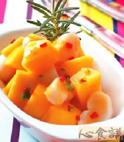 材料 1.虾仁100公克,新鲜干贝100公克,蟹肉100公克,南瓜100公克,马铃薯100公克,2.蛋黄美乃滋适量,3.巴西里末10公克...