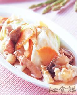 材料 鸡骨600公克,油30㏄,大地鱼2片,丁香鱼30公克,虾米30公克,洋葱丝1/4个,水2000㏄...