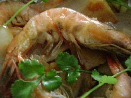 材料 鲜虾5个,粳米50克,白菜10克,盐、鸡精适量...